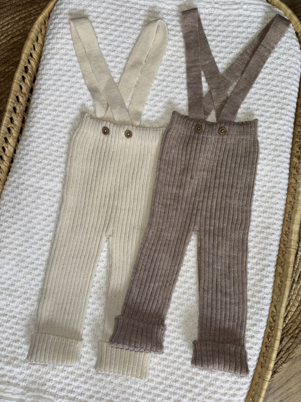 Fijn gebreid galgenbroekje van Mac ILusion in de kleur linnen.
