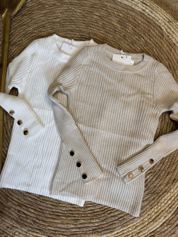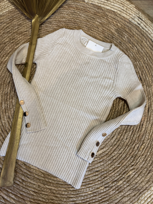 Heerlijk zacht truitje met goudkleurige knopen in het zandkleur.