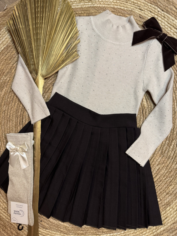 Mooi zandkleurig truitje met strass steentjes .
