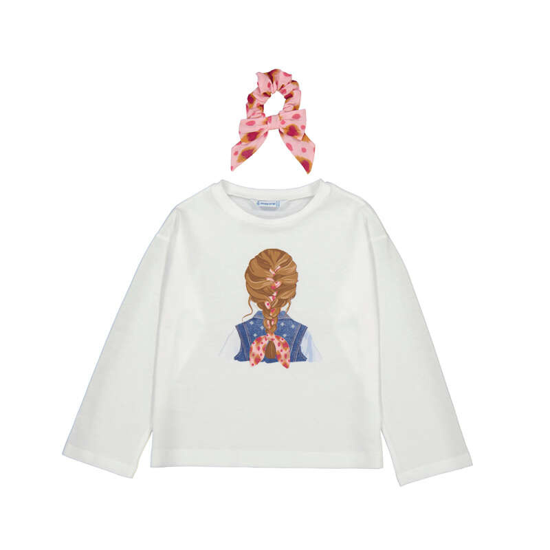 Mayoral shirtje met leuke print en bijpassende scrunchie.