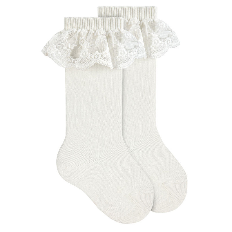 Prachtige kniekous van cóndor met kant in offwhite.