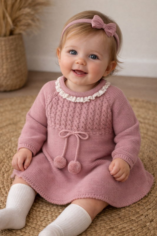 Lief gebreid jurkje van Juliana in oudroze.