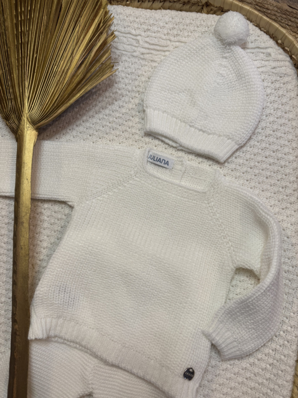 Mooi 3-delig gebreid setje van Juliana in het wit.