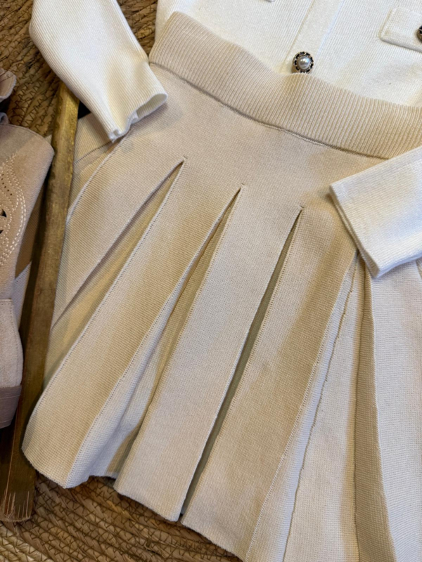 Fijn gebreid plooirokje in het zacht geel.Lengte circa: