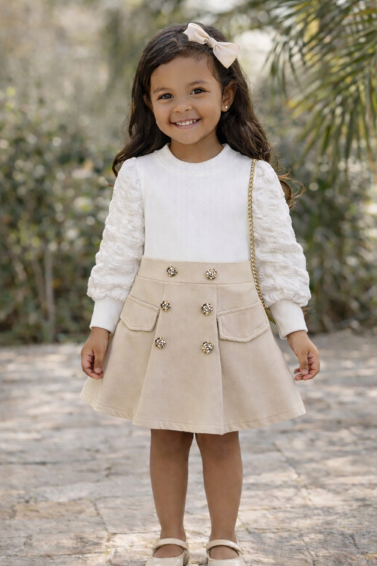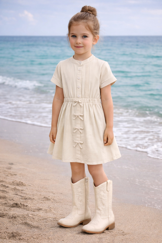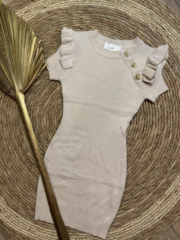 Fijne gebreide jurkjes met mooie goudkleurige knopen in het zandkleur .