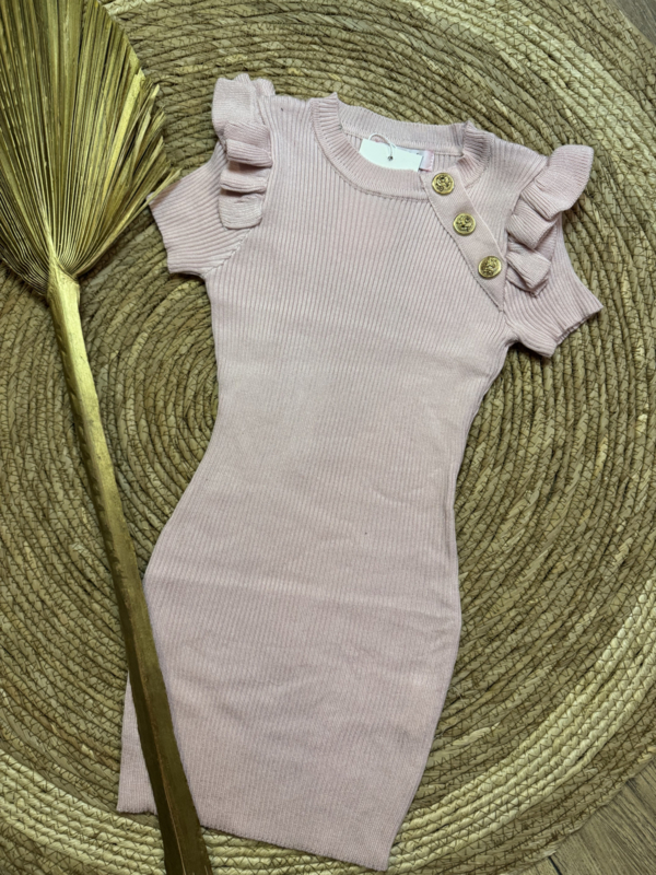 Fijne gebreide jurkjes met goudkleurige details in het roze .