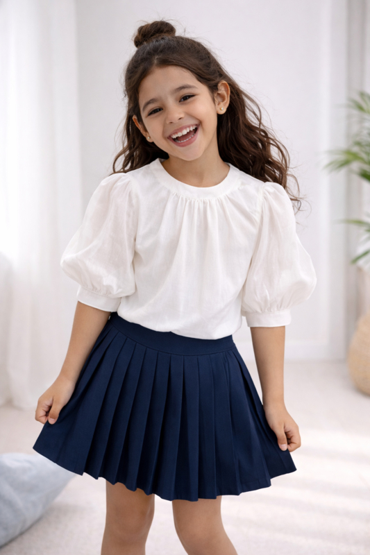 Fijn plooirokje met een mooie boord in het donkerblauw .