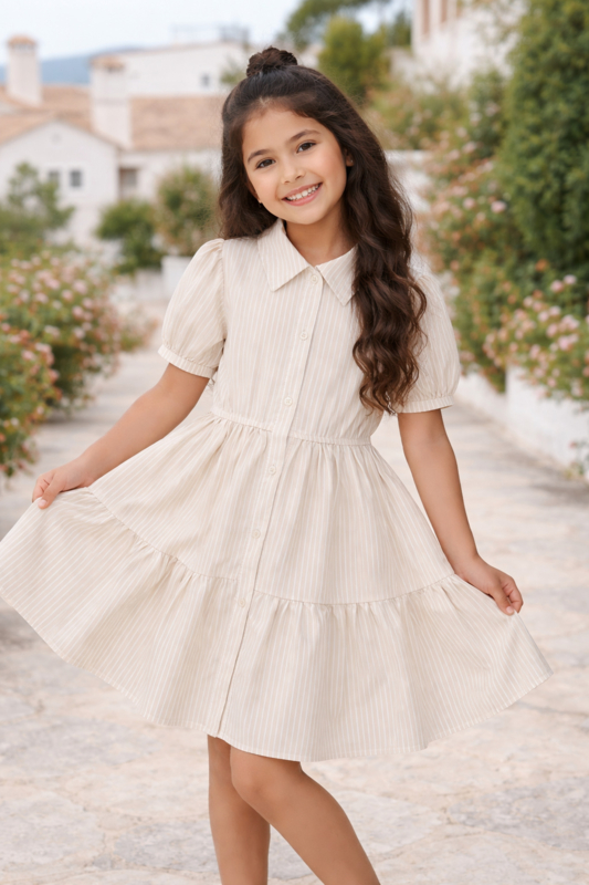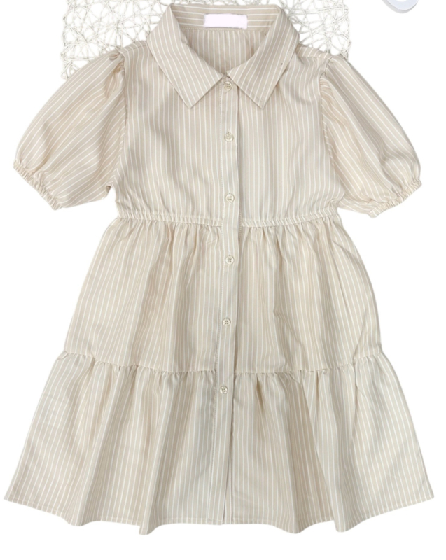 Heerlijk zomerjurkje zandkleur gestreept met korte mouwen .