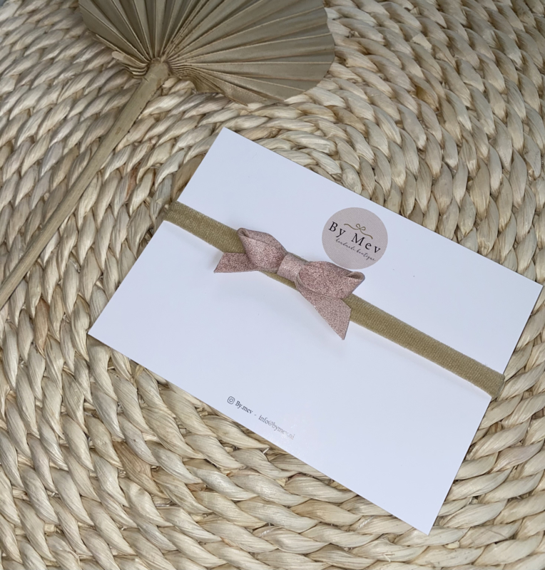 Lief haarbandje met een leren strikje in de kleur soft blossom.