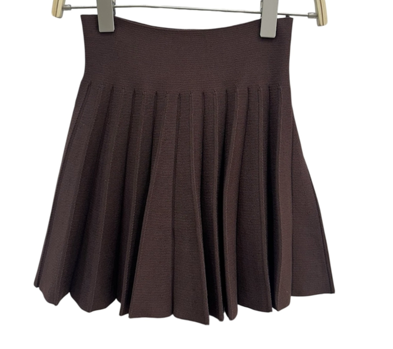 Mooi fijn gebreid rokje met gouden knoopjes in het oudroze.